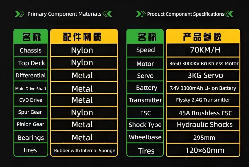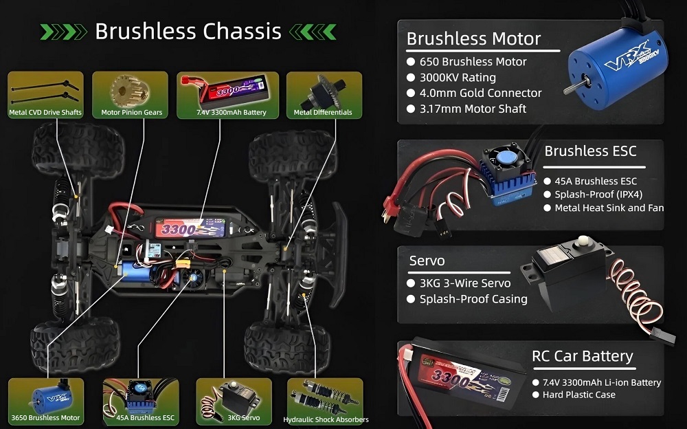 This 1/10 scale remote-controlled truck, suitable for both adults and children, features a 3650 brushless motor and brushless ESC.